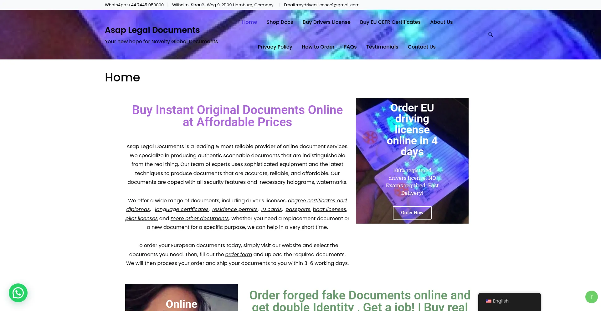 Asap Legal Documents is the best & fastest place to buy driver's license, cheap Passports, order IELTS, get fake school certificates, novelty id cards, residence permits, degree...