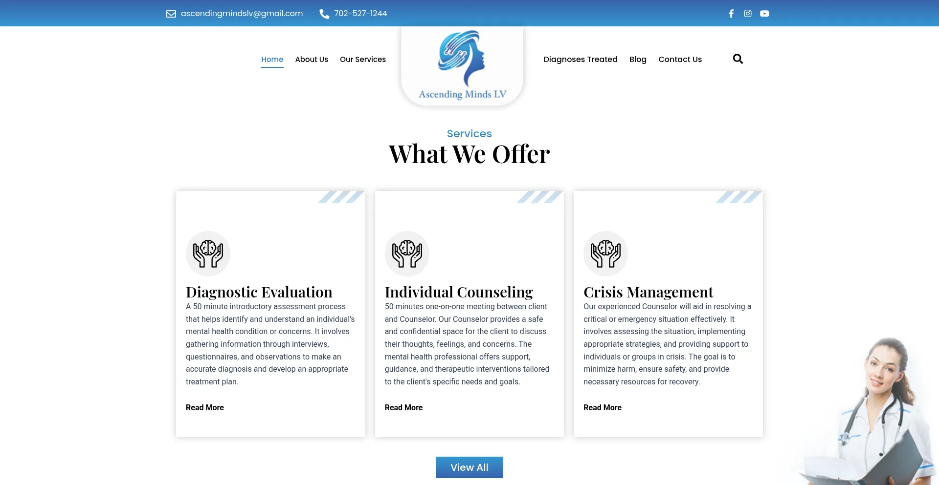 网站上存在社交媒体链接表明 ascendingmindslv.com 在社交媒体上维护官方账户,这是可信度和参与度的积极信号。
