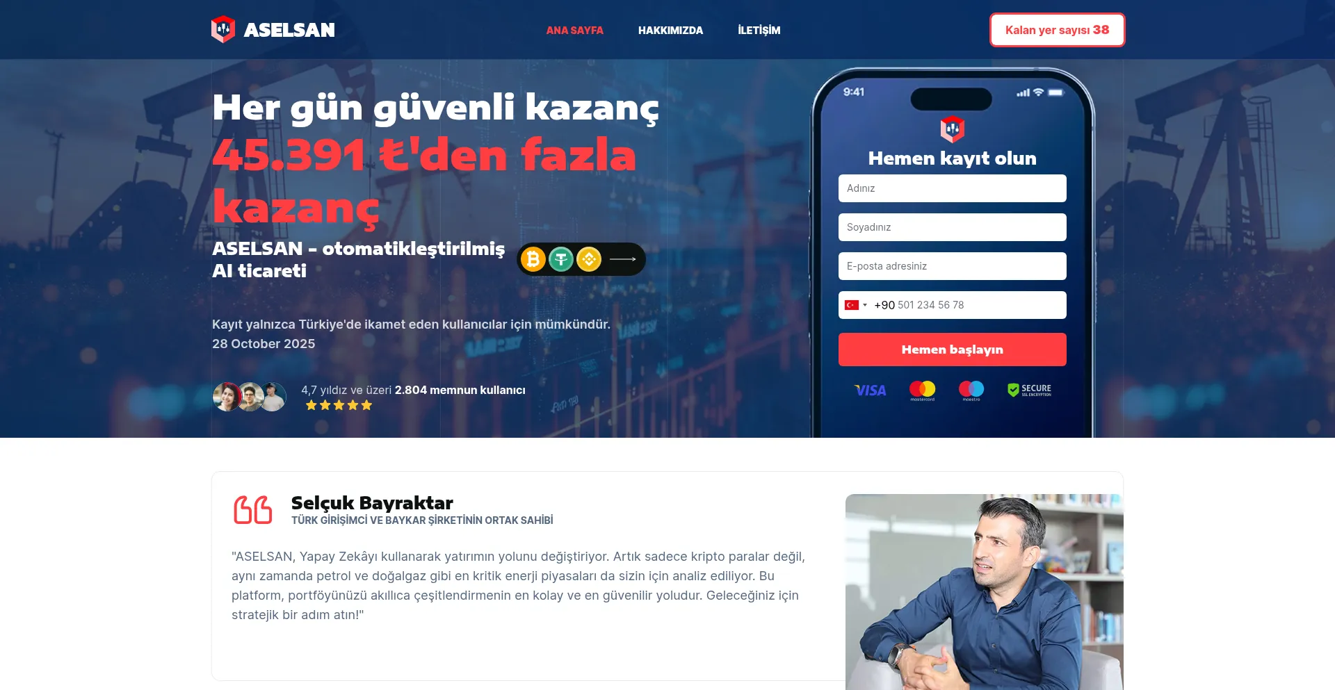 ASELSAN - Karlı kripto para işlemleri için yapay zeka destekli yatırım platformu. Günlük 950 €'ya varan kazanç sağlayan otomatik ticaret stratejileri. Türk yatırım...
