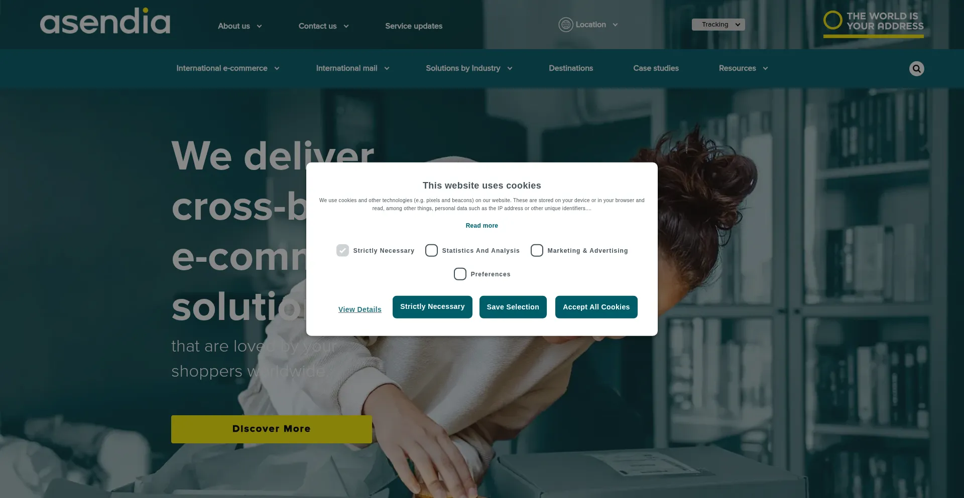该网站实现符合GDPR或CCPA等隐私法规的cookie同意机制。这表明 asendia.com 遵守数据保护标准并为用户提供对个人数据收集实践的控制。