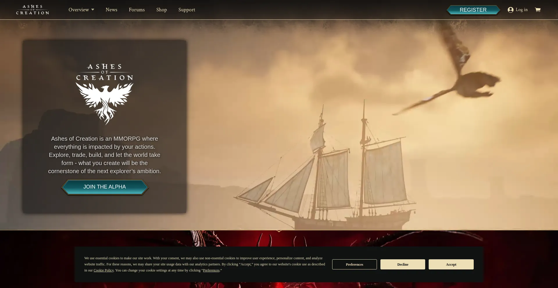 该网站实现符合GDPR或CCPA等隐私法规的cookie同意机制。这表明 ashesofcreation.com 遵守数据保护标准并为用户提供对个人数据收集实践的控制。