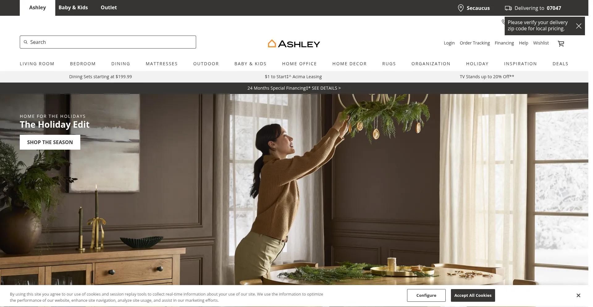 ashleyfurniture.com 提供 Android 设备移动应用程序,表明平台存在已扩展到网络服务之外。