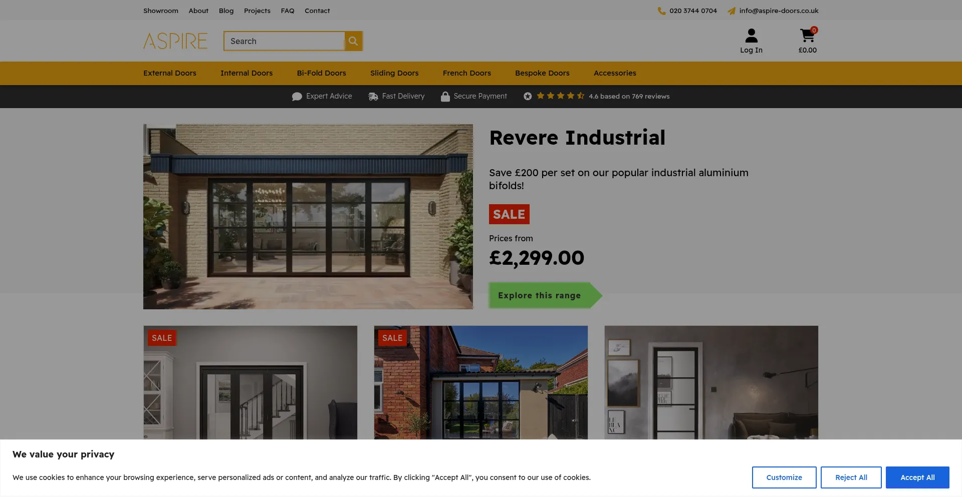 该网站实现符合GDPR或CCPA等隐私法规的cookie同意机制。这表明 aspire-doors.co.uk 遵守数据保护标准并为用户提供对个人数据收集实践的控制。