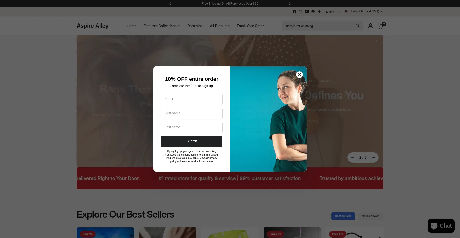 该网站实现数据收集表单,请求个人信息,包括姓名、电子邮件地址、电话号码或其他敏感详细信息。用户应验证 aspirealley.com 的合法性并在提交个人数据前查看隐私政策。