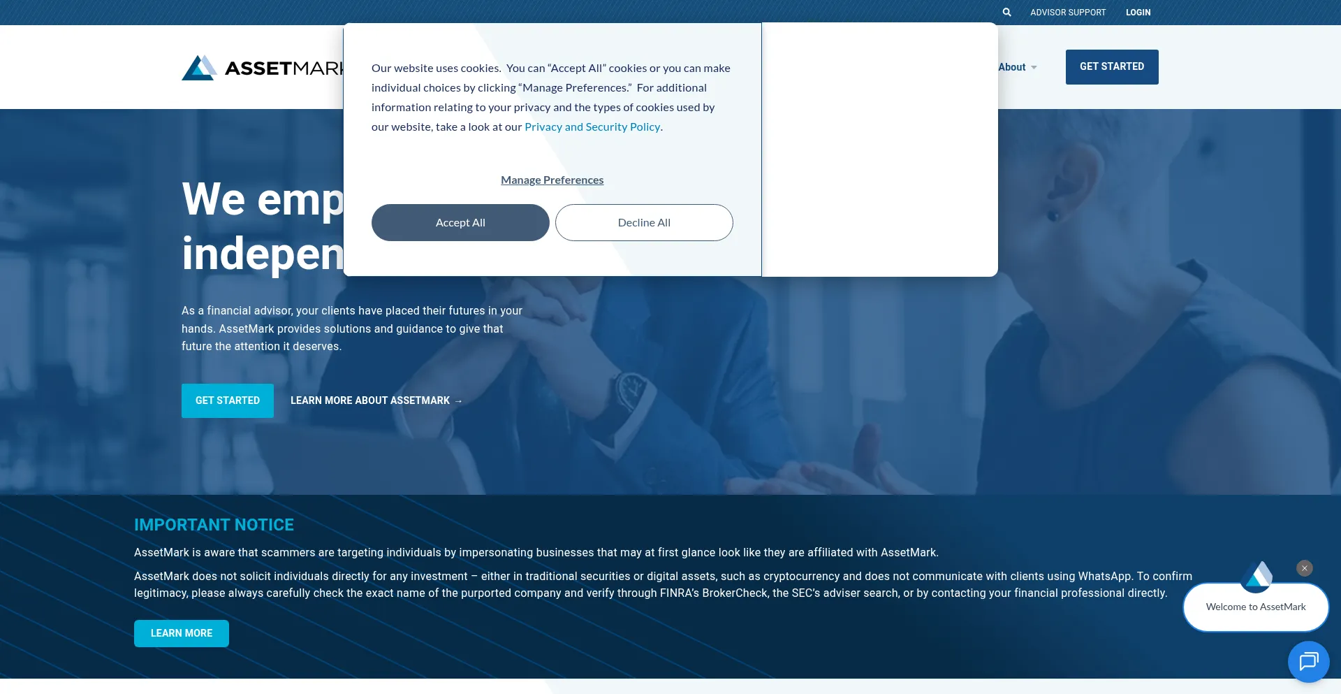 网站上存在社交媒体链接表明 assetmark.com 在社交媒体上维护官方账户,这是可信度和参与度的积极信号。