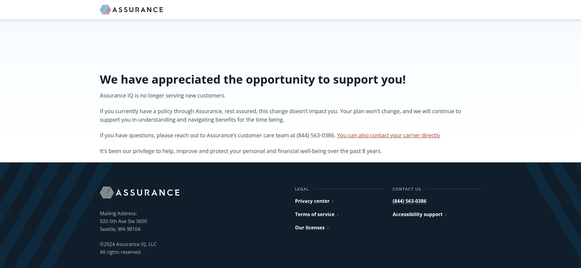 Assurance IQ has closed its operations and is no longer selling new policies or plans.