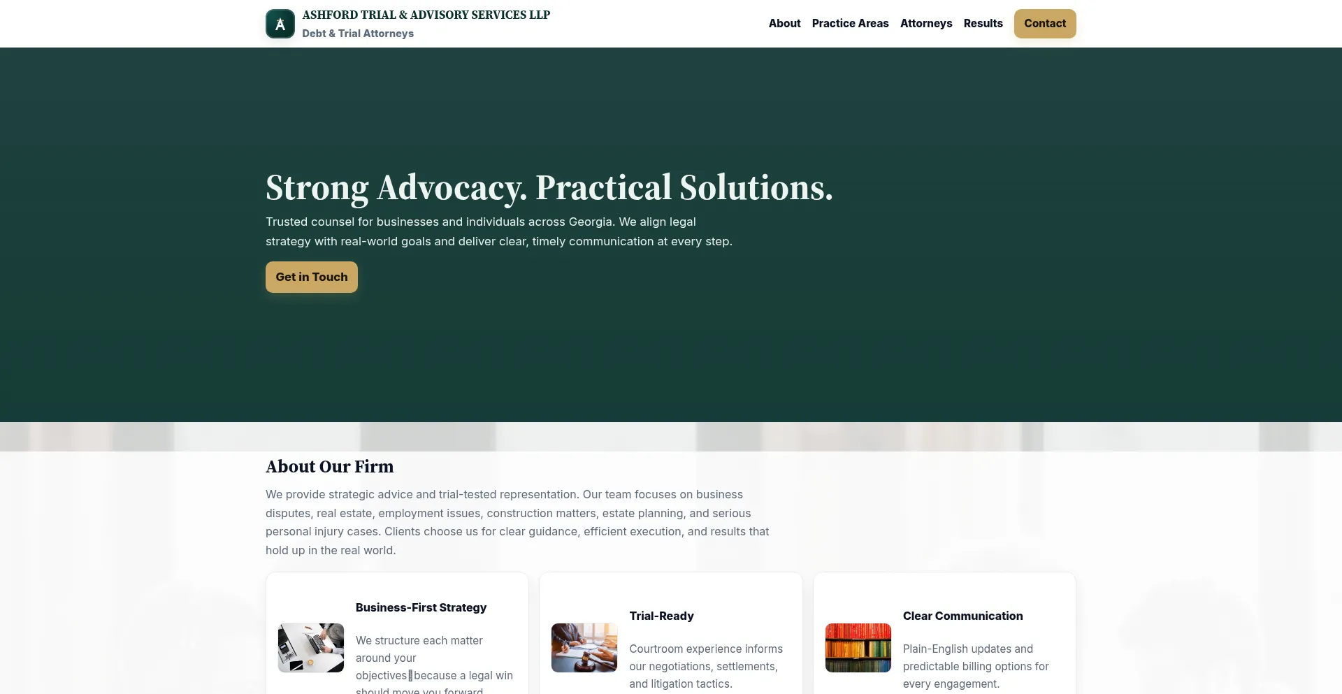 ASHFORD TRIAL & ADVISORY SERVICES LLP provides strategic counsel and trial-tested advocacy across Georgia in business litigation, real estate, employment, construction, estate p...