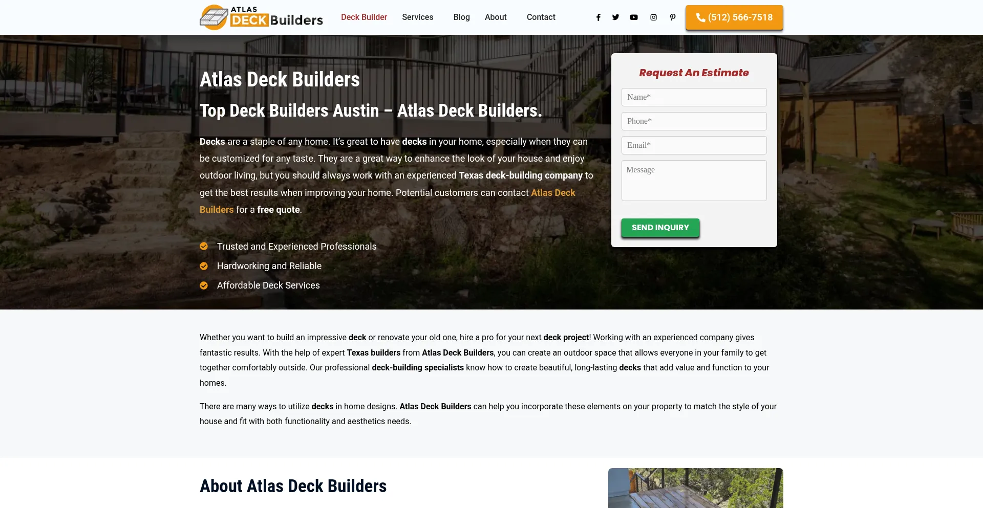网站上存在社交媒体链接表明 atlasdeckbuilders.com 在社交媒体上维护官方账户,这是可信度和参与度的积极信号。