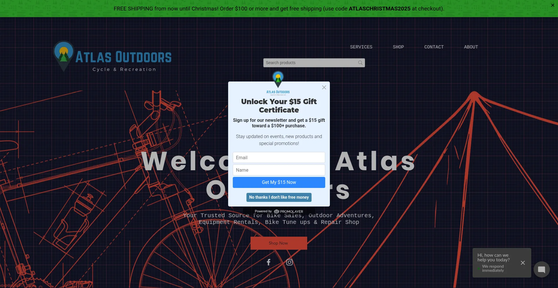 Atlas Outdoors | Bicycle Repair Shop | Outdoor Supplies | Smoker and Pellet Supplies | Ammunition