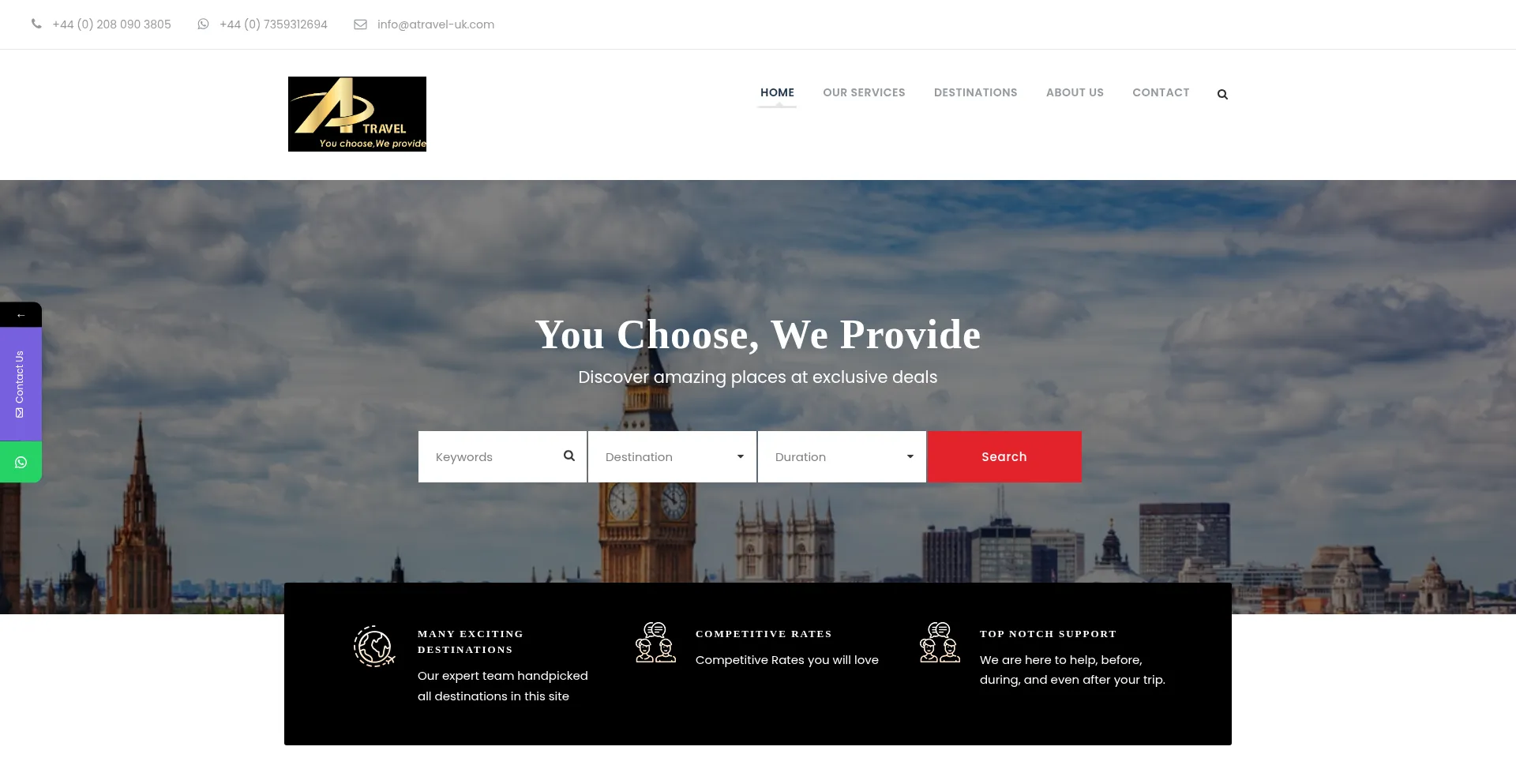 该网站实现数据收集表单,请求个人信息,包括姓名、电子邮件地址、电话号码或其他敏感详细信息。用户应验证 atravel-uk.com 的合法性并在提交个人数据前查看隐私政策。