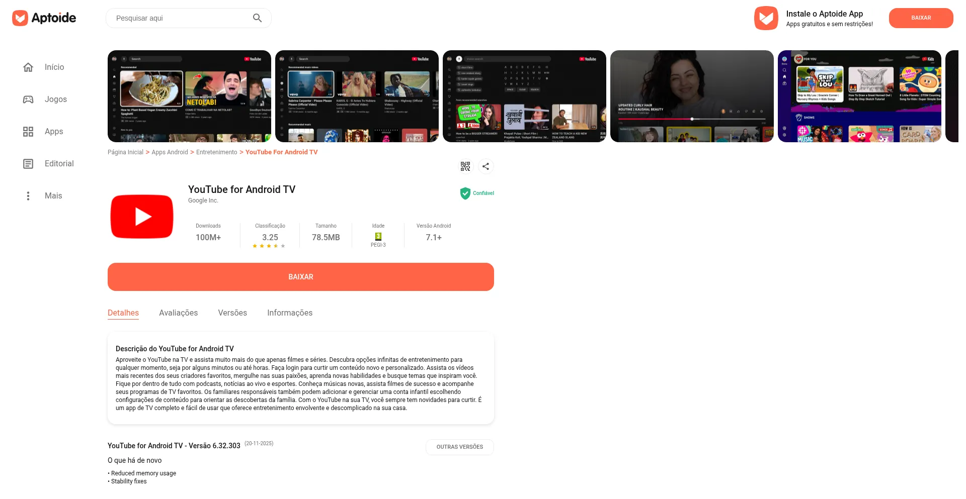 Baixe o APK YouTube for Android TV 6.32.303 para Android agora mesmo. Sem custos extras. Avaliações dos usuários para YouTube for Android TV: 3.25 ★