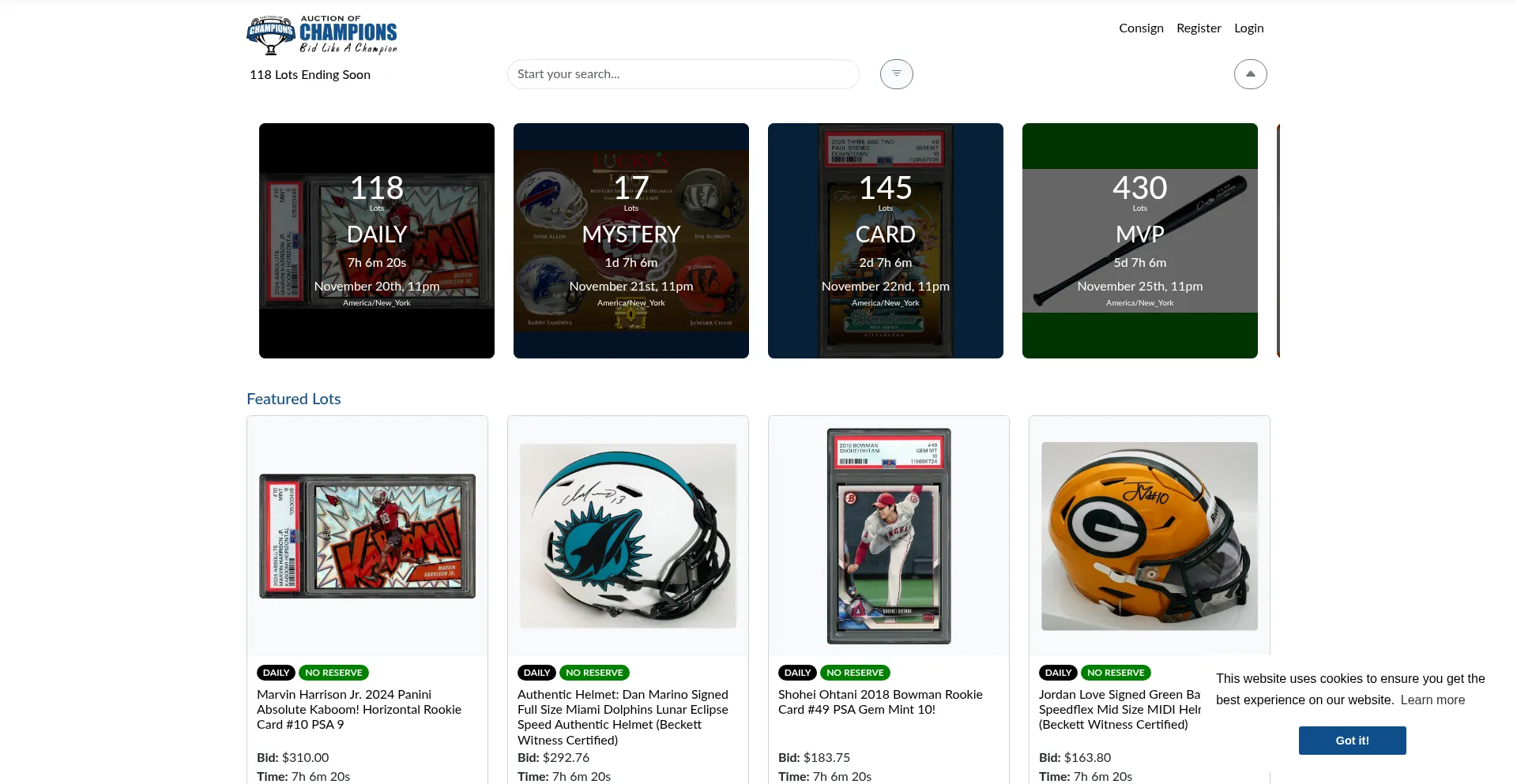 该网站实现符合GDPR或CCPA等隐私法规的cookie同意机制。这表明 auctionofchampions.com 遵守数据保护标准并为用户提供对个人数据收集实践的控制。
