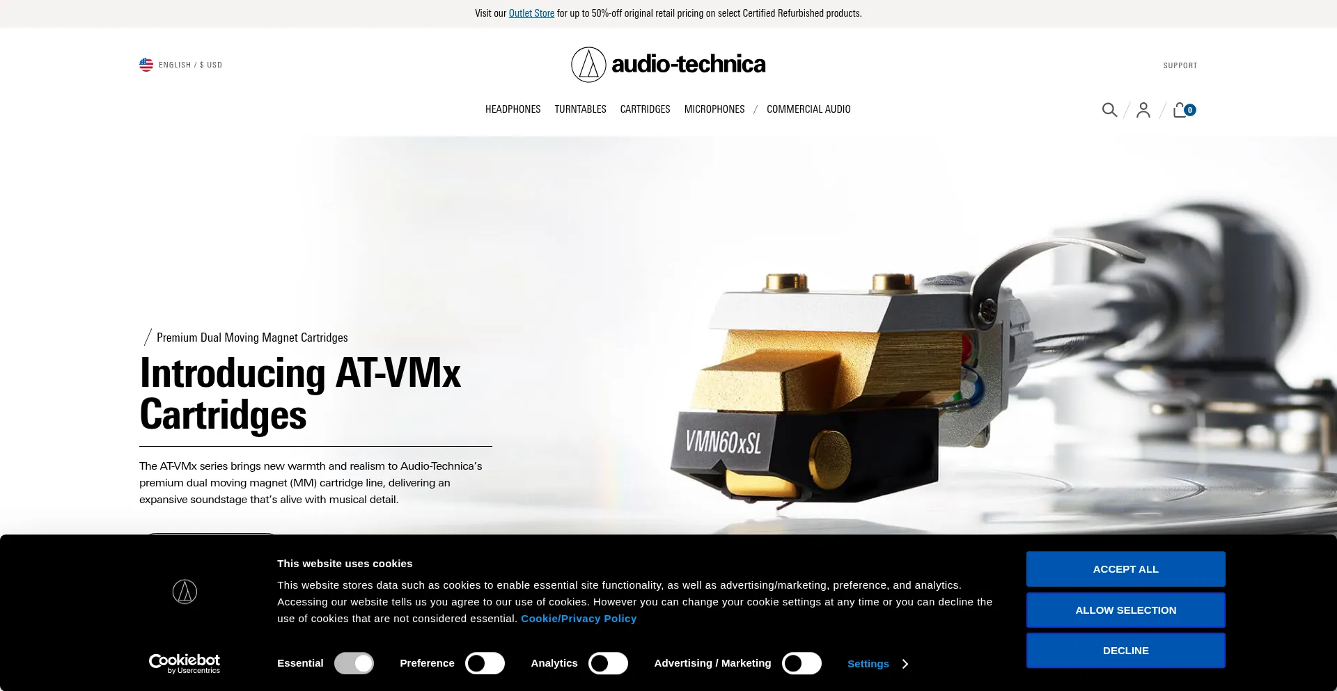 该网站实现符合GDPR或CCPA等隐私法规的cookie同意机制。这表明 audio-technica.com 遵守数据保护标准并为用户提供对个人数据收集实践的控制。