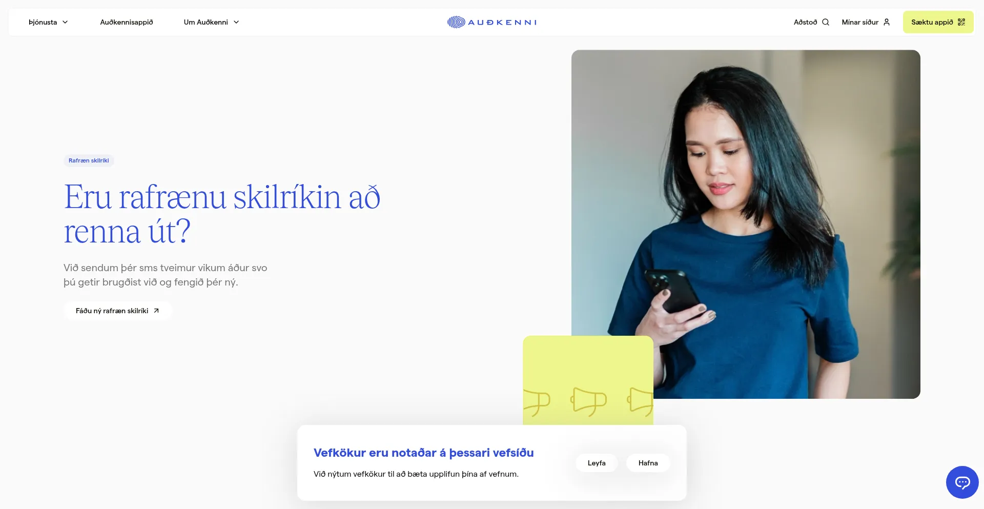 audkenni.is 提供 Android 设备移动应用程序,表明平台存在已扩展到网络服务之外。
