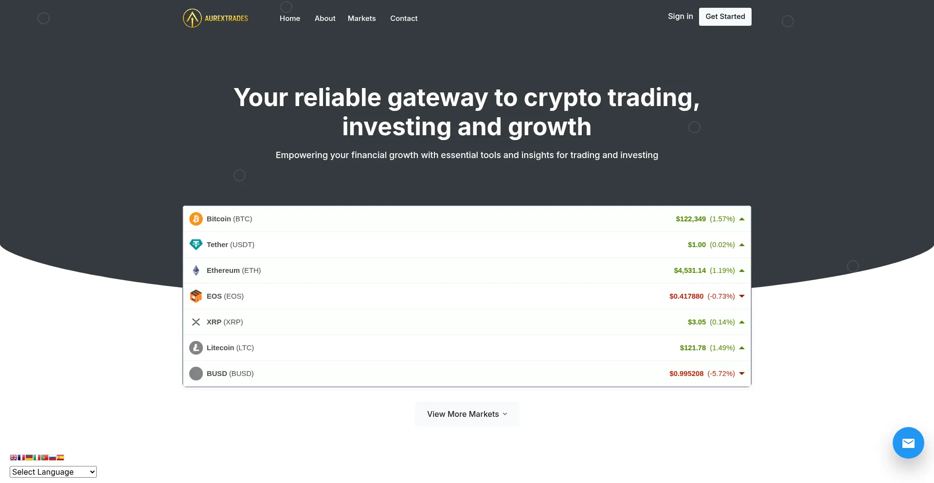 aurextrades.com 使用 Bootstrap,这是一个广泛采用的开源响应式网页开发框架。Bootstrap 通过标准化组件和样式实现移动友好界面的高效创建。