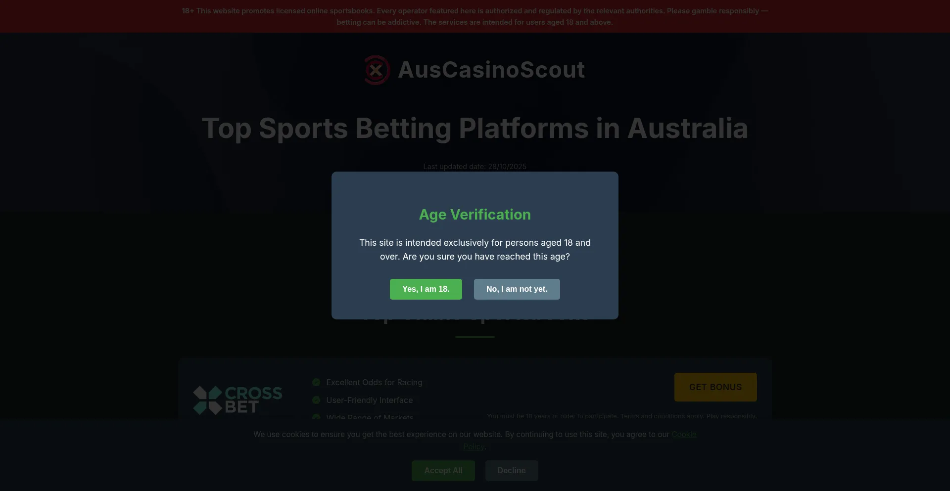 该网站实现符合GDPR或CCPA等隐私法规的cookie同意机制。这表明 auscasinoscout.com 遵守数据保护标准并为用户提供对个人数据收集实践的控制。
