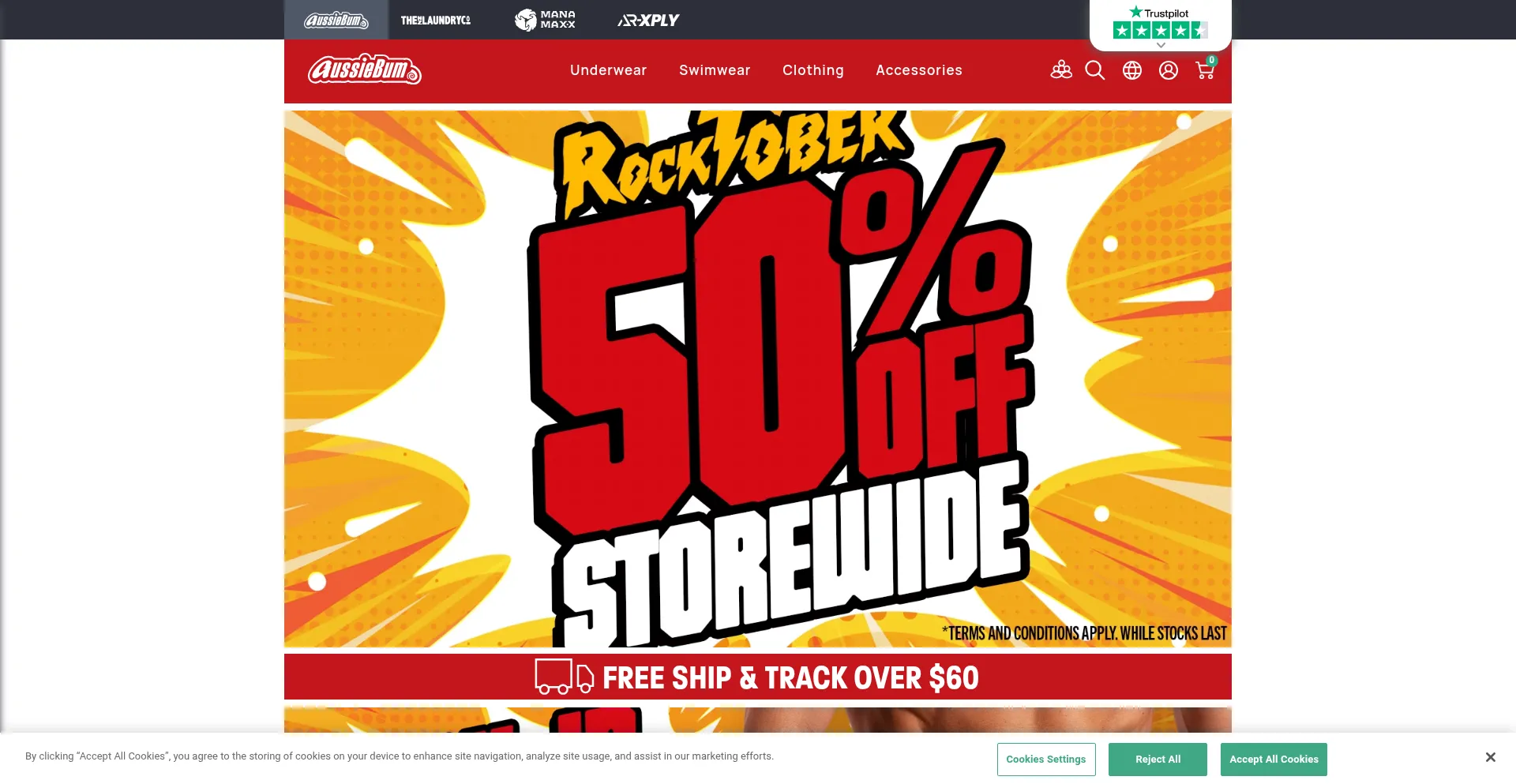 该网站实现符合GDPR或CCPA等隐私法规的cookie同意机制。这表明 aussiebum.com 遵守数据保护标准并为用户提供对个人数据收集实践的控制。