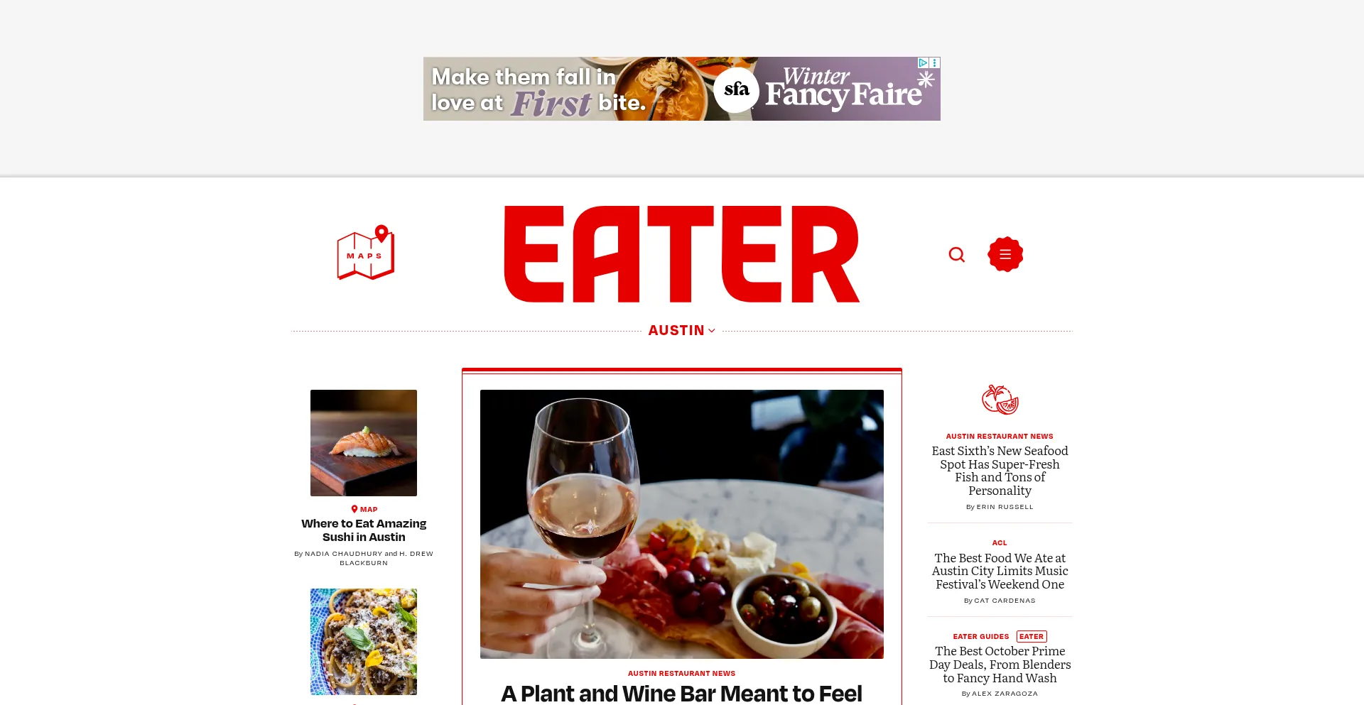 austin.eater.com 拥有可用的 iOS 移动应用程序,表明为 Apple 设备用户提供跨平台可访问性。