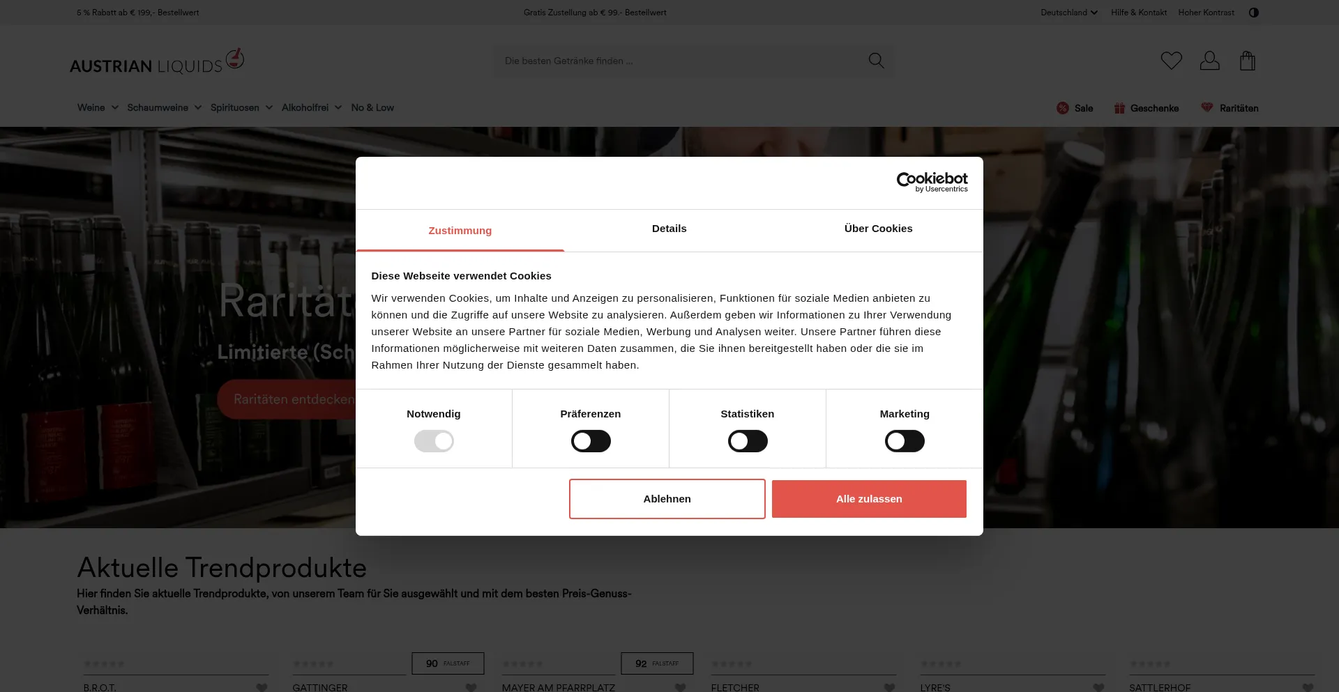 Wein & Spirituosen online kaufen. Der österreichische Online Shop "Austrian Liquids" bietet eine riesen Auswahl an edlen Weinen & Spirituosen.