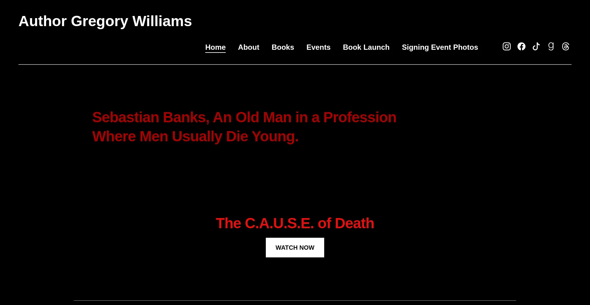 网站上存在社交媒体链接表明 authorgregwilliams.com 在社交媒体上维护官方账户,这是可信度和参与度的积极信号。