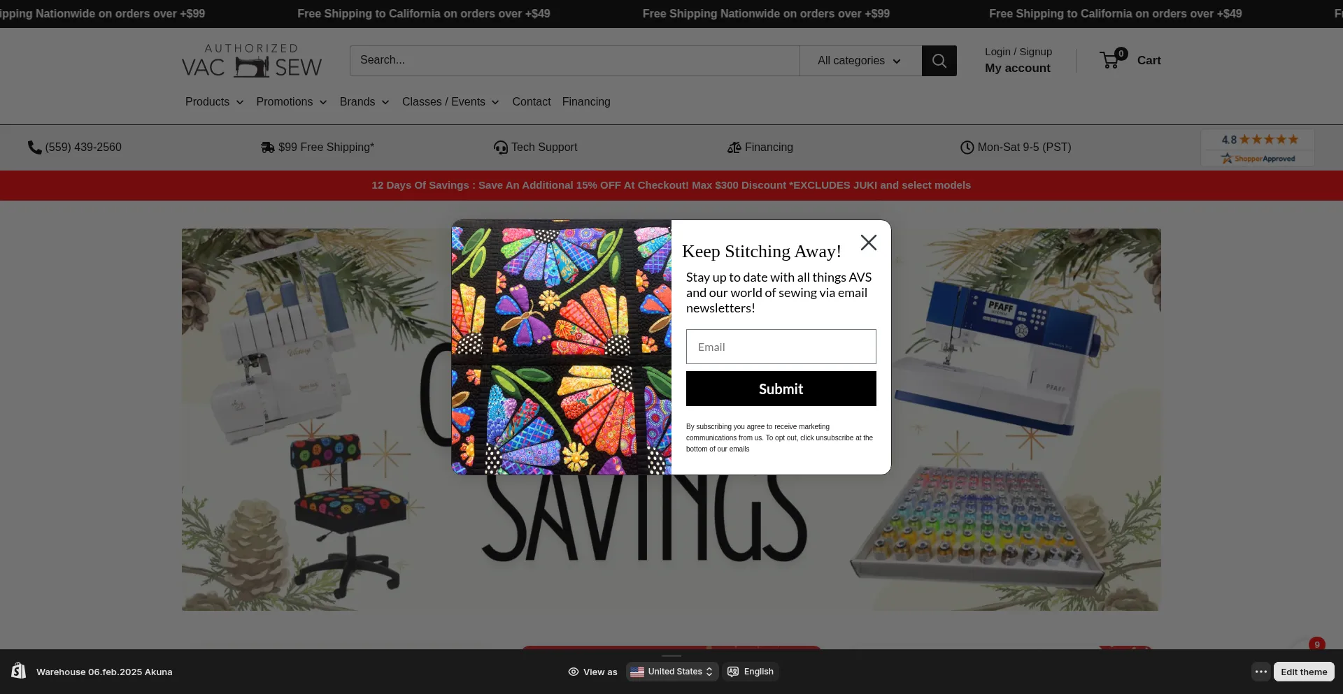 分析表明 authorizedvacandsew.com 作为电子商务平台运营,促进商品或服务的在线交易。该网站实现了购物车功能、支付处理系统和产品目录功能,这些是商业零售运营的典型特征。