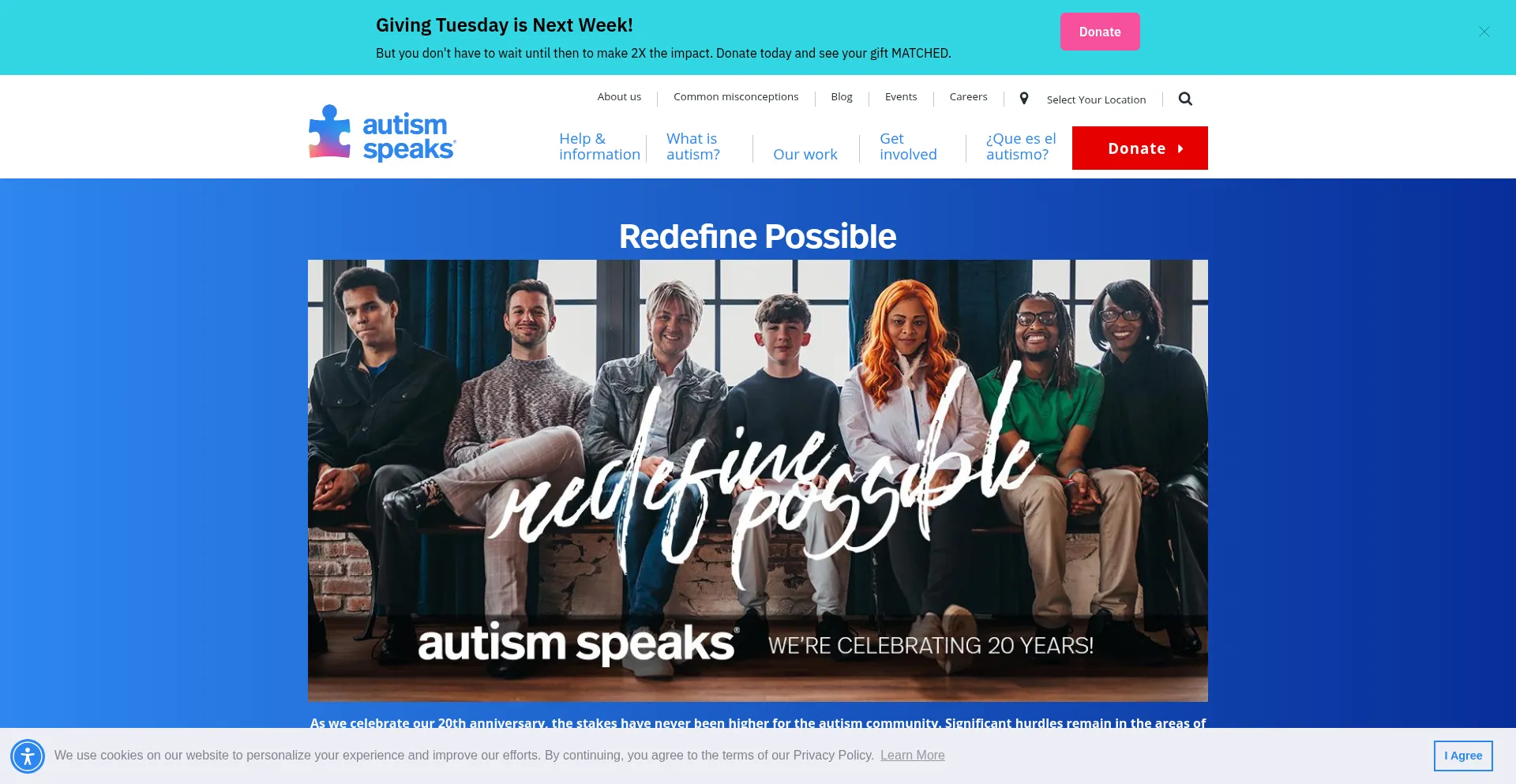 该网站实现符合GDPR或CCPA等隐私法规的cookie同意机制。这表明 autismspeaks.org 遵守数据保护标准并为用户提供对个人数据收集实践的控制。