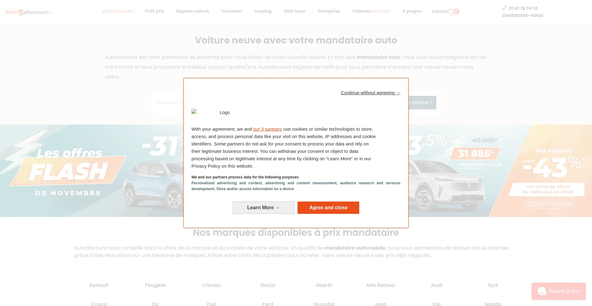 Mandataire auto proposant jusqu’à -42.00% sur votre véhicule neuf ou d’occasion ⚡ 30 marques ⭐ 9500 véhicules ☎ 01 47 76 74 70
