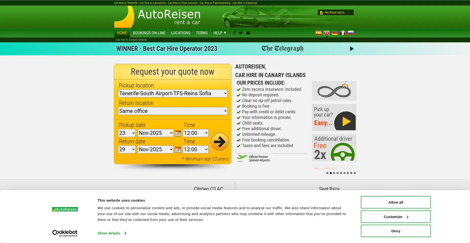 该网站实现符合GDPR或CCPA等隐私法规的cookie同意机制。这表明 autoreisen.com 遵守数据保护标准并为用户提供对个人数据收集实践的控制。
