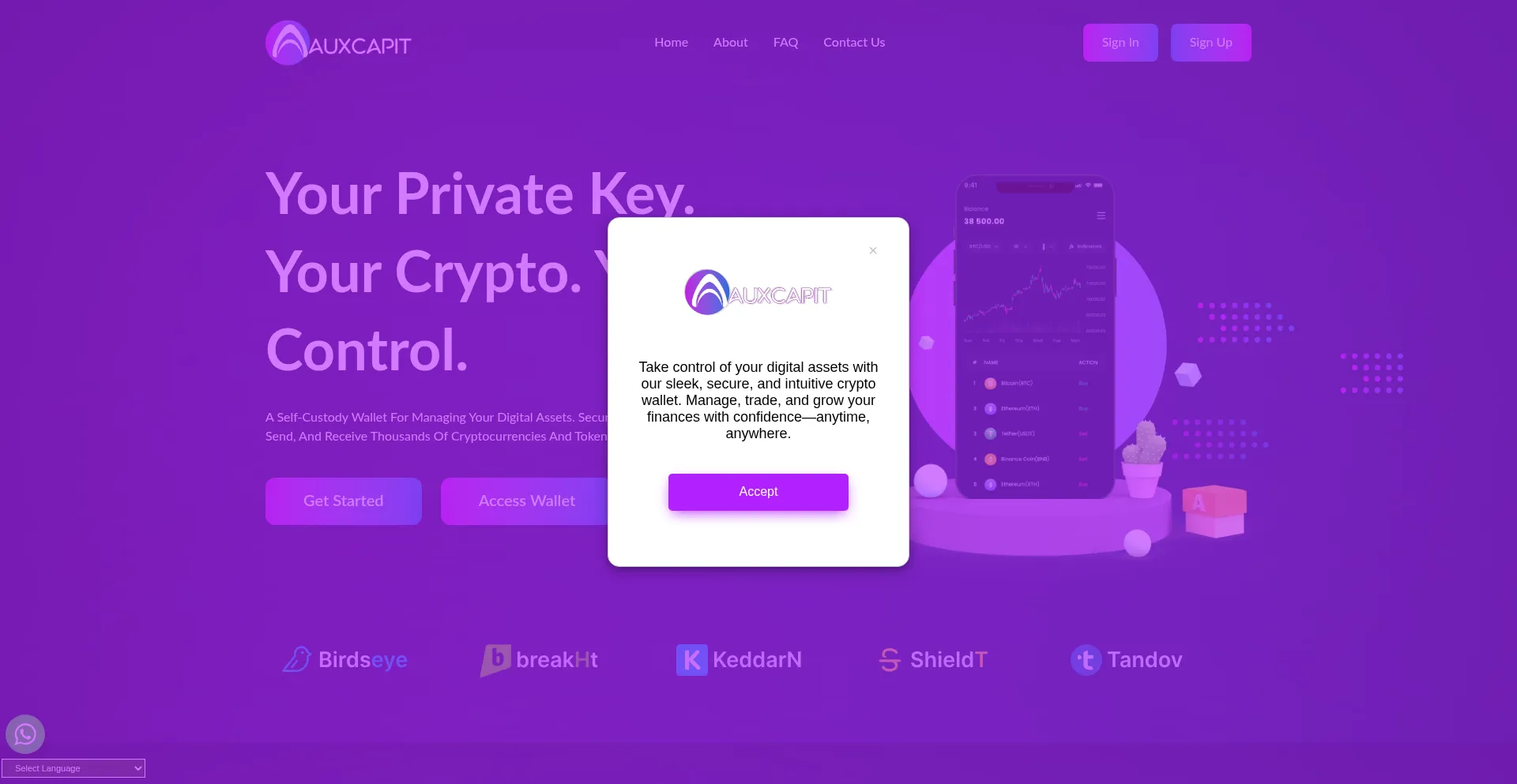 该网站实现数据收集表单,请求个人信息,包括姓名、电子邮件地址、电话号码或其他敏感详细信息。用户应验证 auxcapit.com 的合法性并在提交个人数据前查看隐私政策。