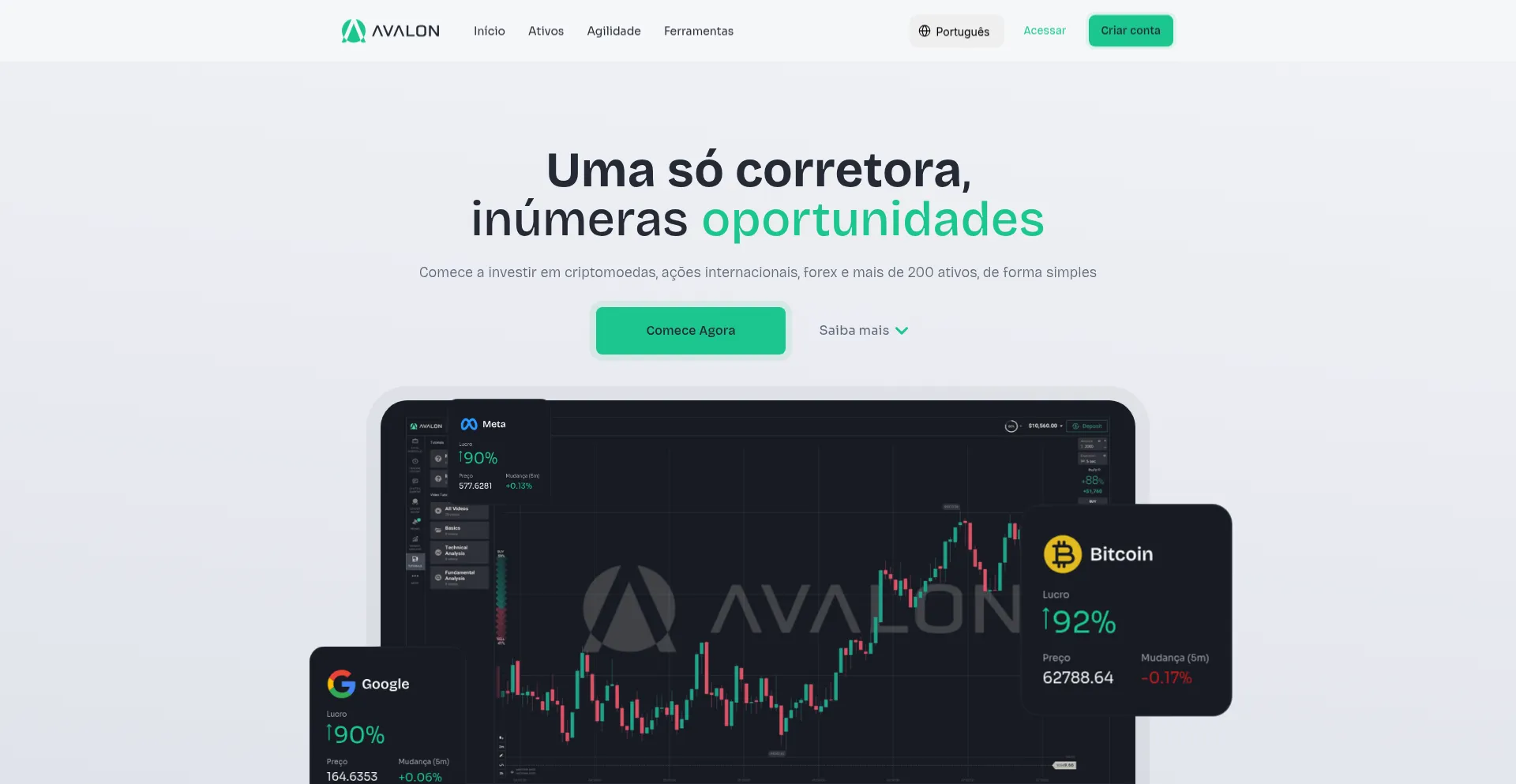Comece a investir em criptomoedas, ações internacionais, forex e mais de 200 ativos, de forma simples