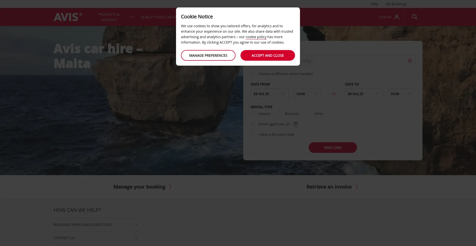 Rent a car with Avis in Malta or beyond and enjoy quality service anywhere you go. Explore our extensive car rental fleet and discover great deals when you book directly with us.