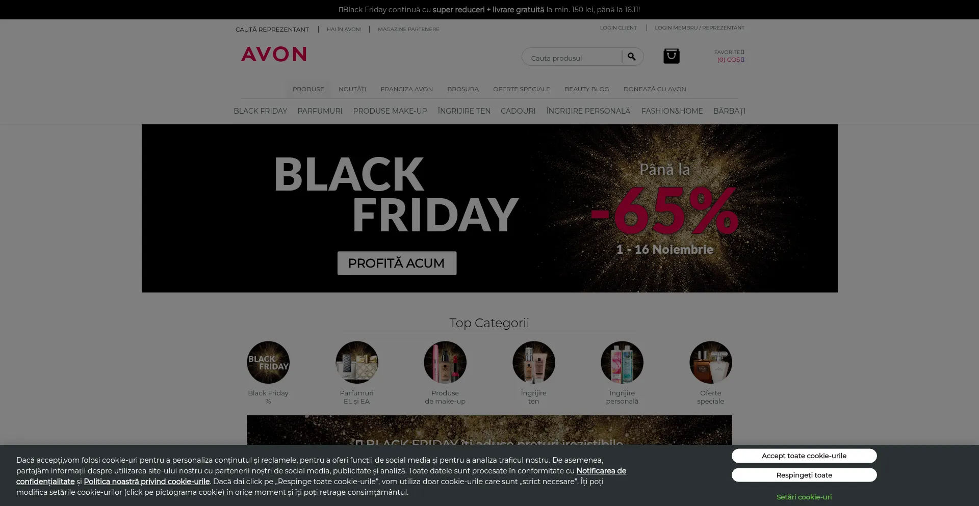 该网站实现符合GDPR或CCPA等隐私法规的cookie同意机制。这表明 avon.ro 遵守数据保护标准并为用户提供对个人数据收集实践的控制。