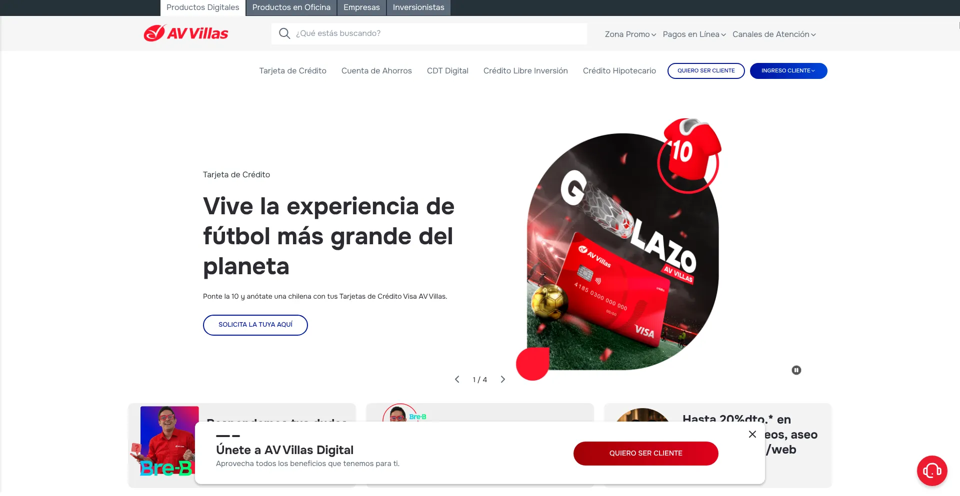Solicita tus productos bancarios en línea | Banco AV Villas