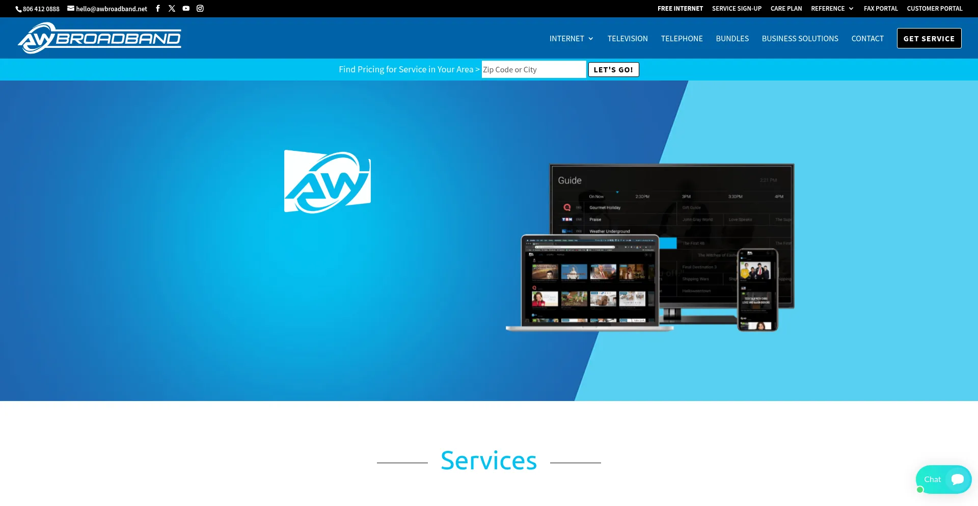 AW Broadband Provides high speed wireless and fiber internet, digital cable television and telephone connections for your home or business.