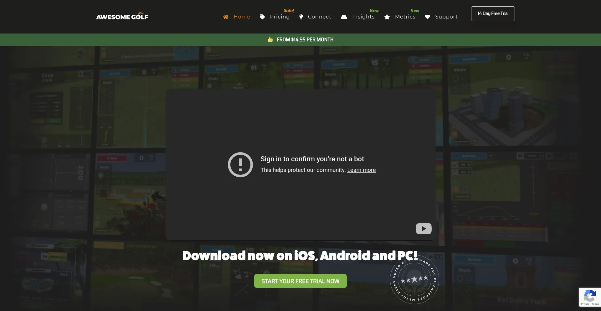 awesome-golf.com 拥有可用的 iOS 移动应用程序,表明为 Apple 设备用户提供跨平台可访问性。