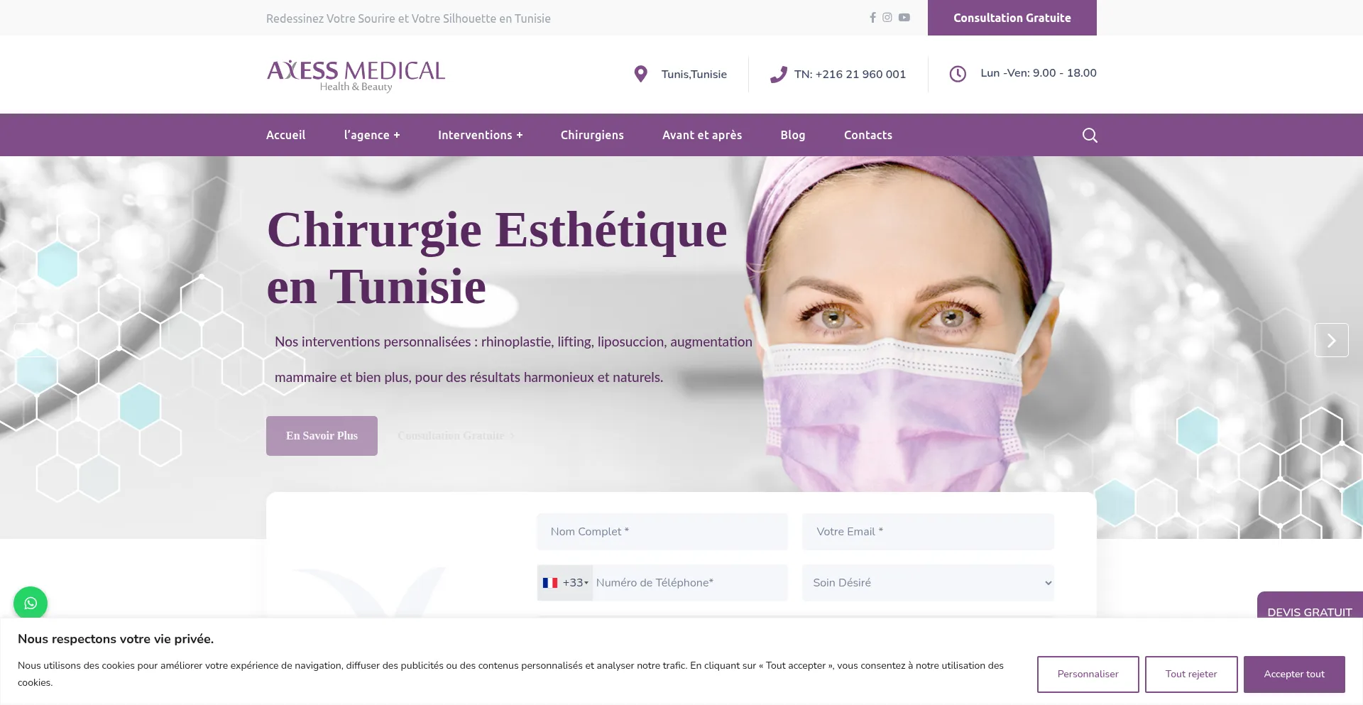 Axess Medical offre des services de chirurgie esthétique, dentisterie, et greffe de cheveux en Tunisie avec une équipe experte et un accompagnement complet. Consultation gratu...