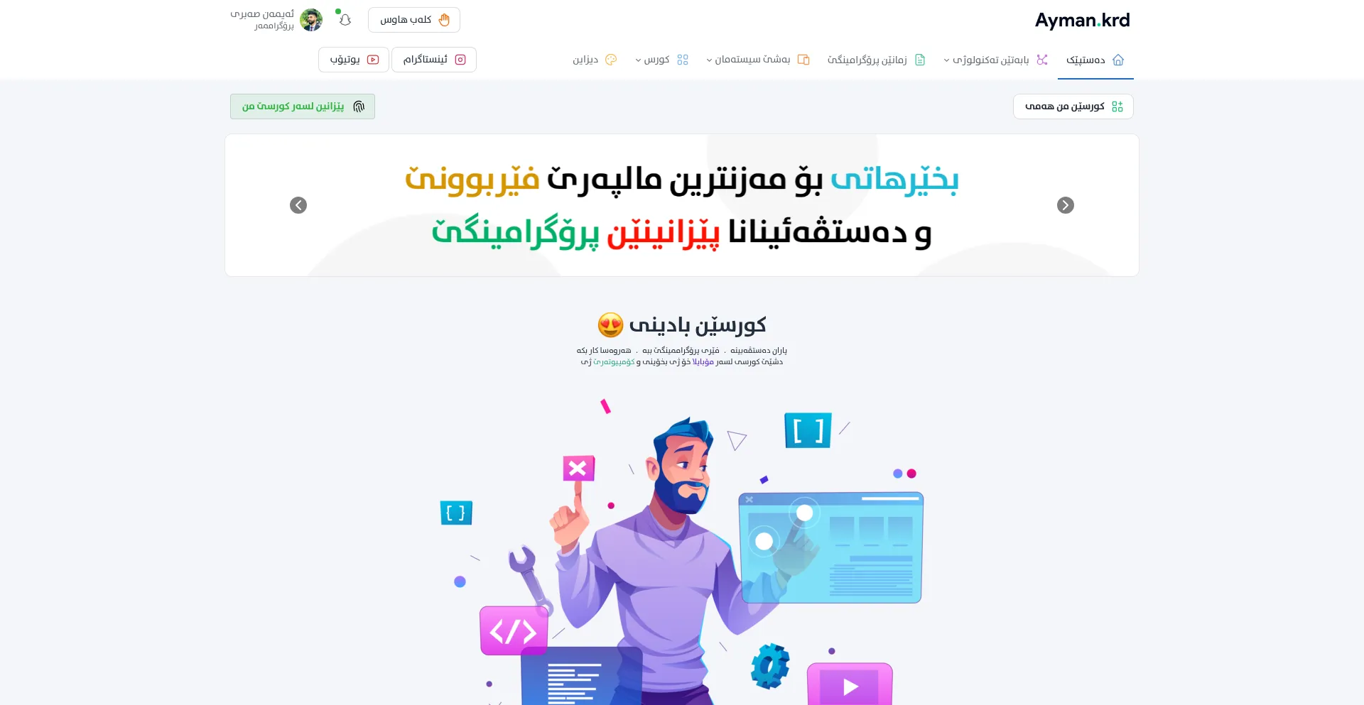 网站上存在社交媒体链接表明 ayman.krd 在社交媒体上维护官方账户,这是可信度和参与度的积极信号。