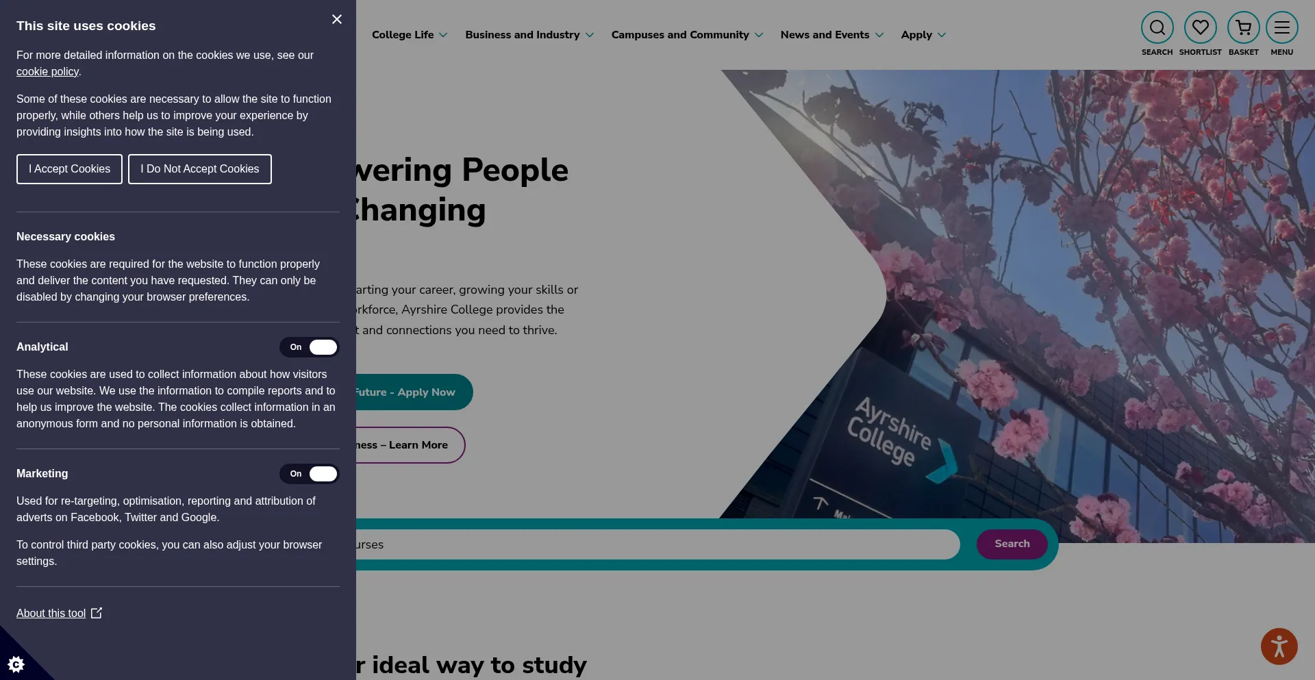 该网站实现符合GDPR或CCPA等隐私法规的cookie同意机制。这表明 ayrshire.ac.uk 遵守数据保护标准并为用户提供对个人数据收集实践的控制。