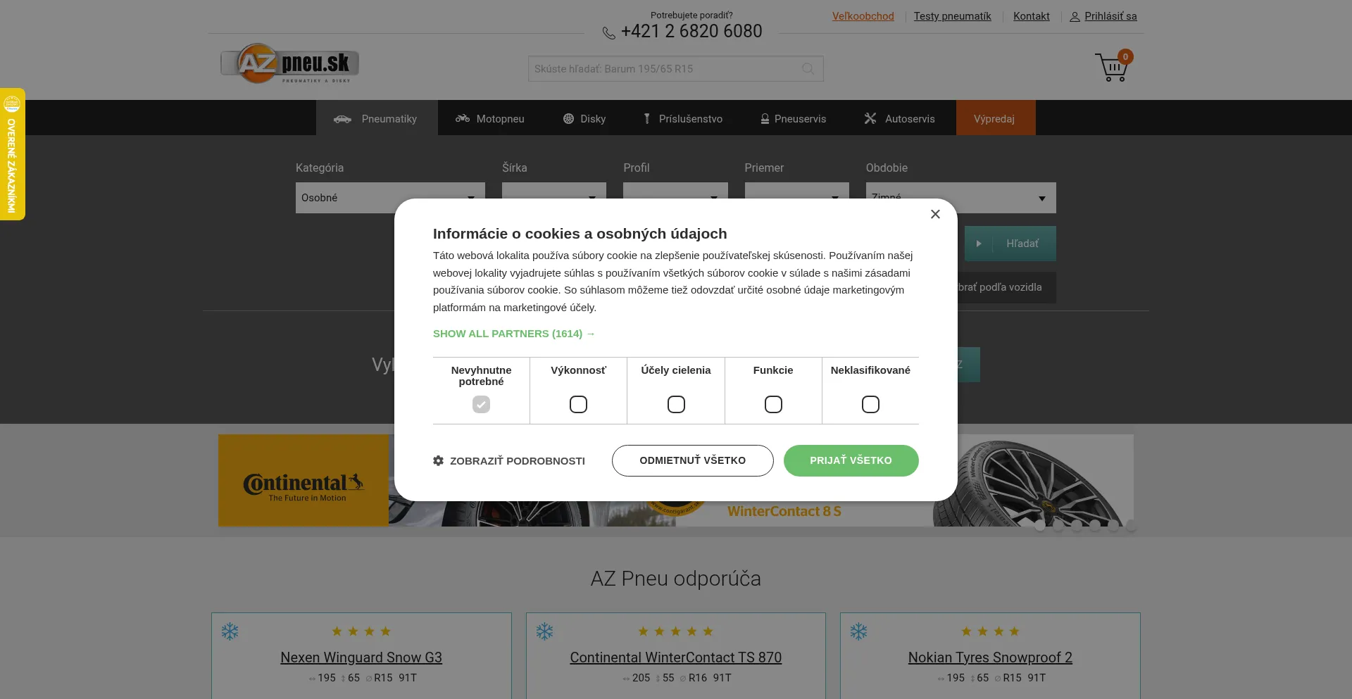 该网站实现符合GDPR或CCPA等隐私法规的cookie同意机制。这表明 az-pneu.sk 遵守数据保护标准并为用户提供对个人数据收集实践的控制。