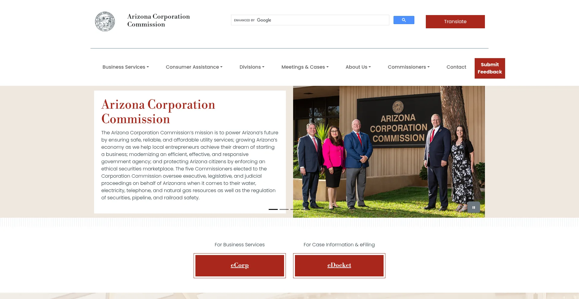 网站上存在社交媒体链接表明 azcc.gov 在社交媒体上维护官方账户,这是可信度和参与度的积极信号。