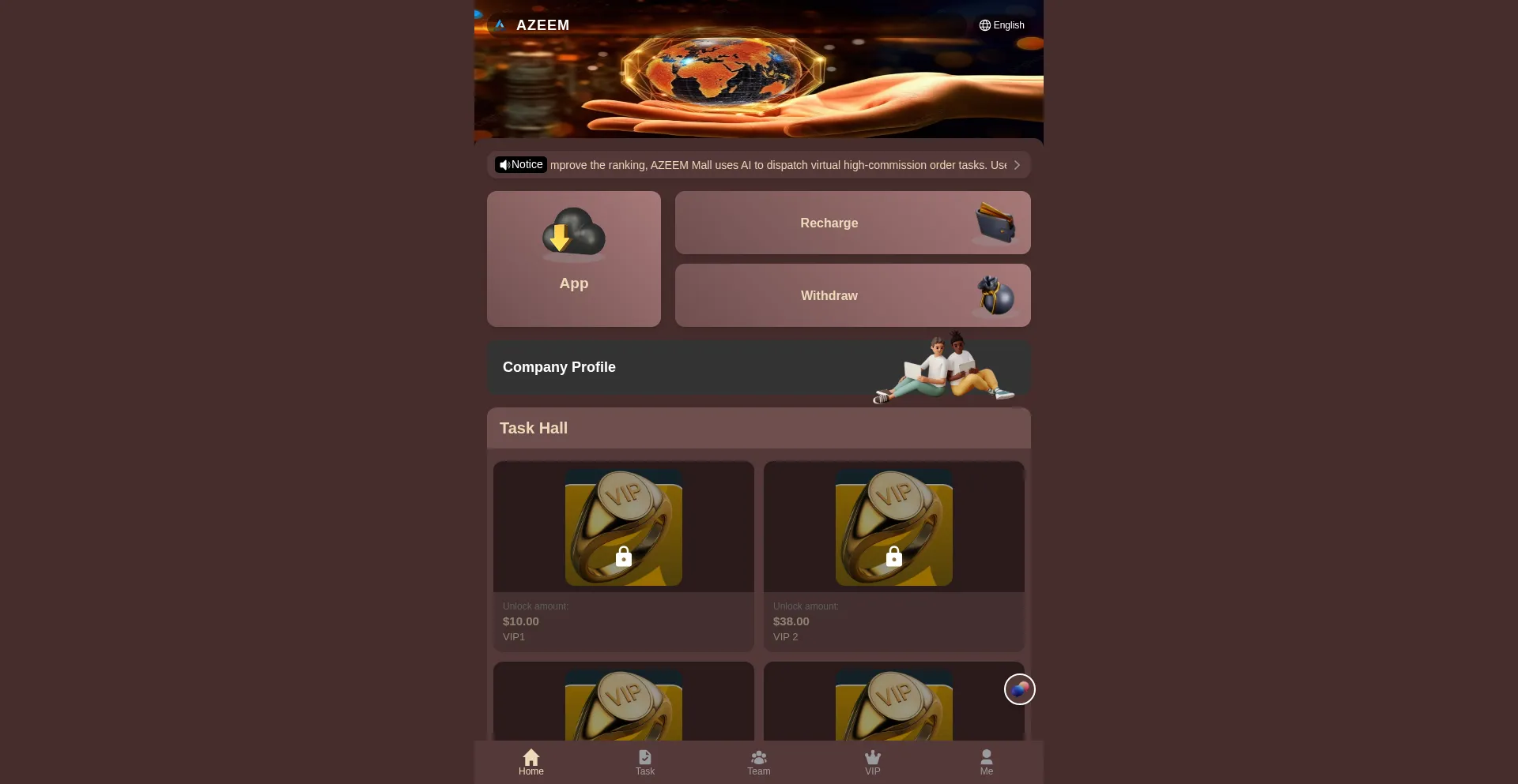 Azeemmall.com 运营欺诈性金融平台,推广具有不现实回报承诺的欺骗性投资机会。安全分析表明该平台采用与 庞氏骗局 和预付费欺诈一致的策略,旨在提取用户资金和个人信息。