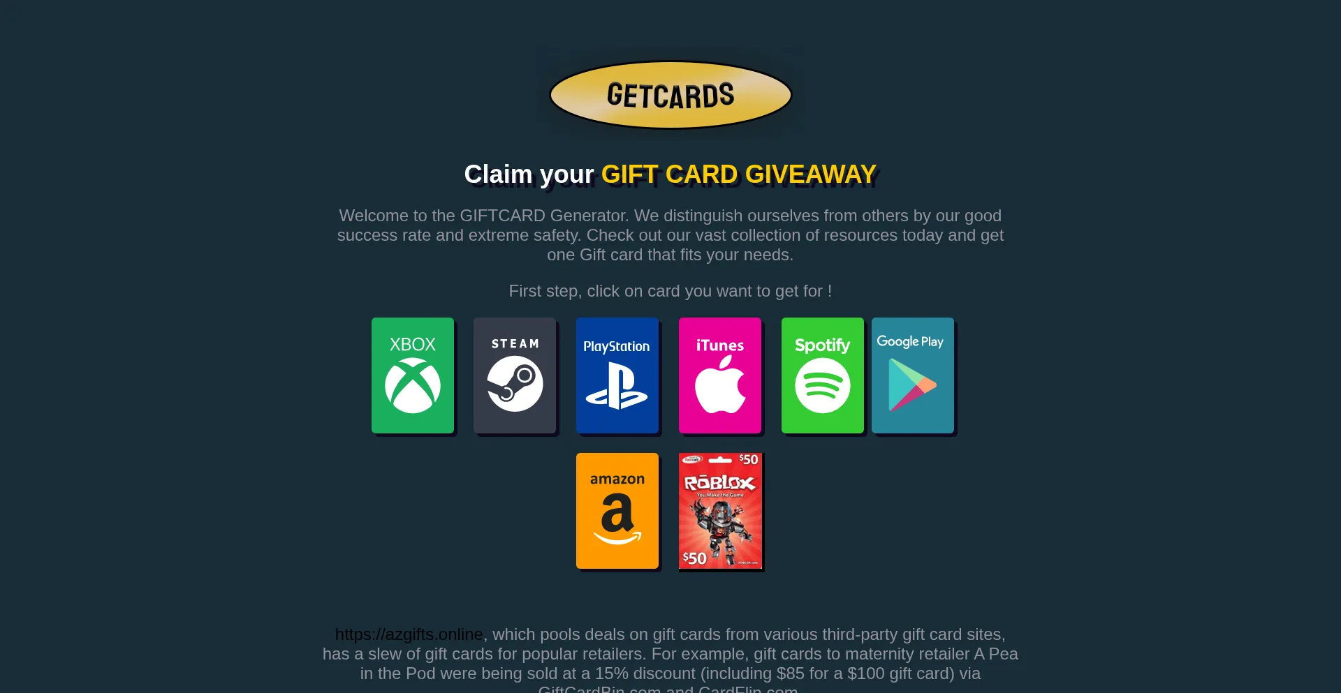 帮助保护他人,快在社交媒体上分享此页面吧!知道azgifts.online的人越多,骗子就越难得逞。 通过在社交媒体上分享此页面,帮助更多人发现可靠的azgifts.online吧!