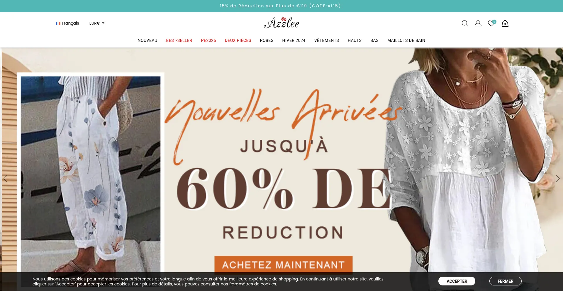 Les vêtements de mode pour femme chez Azzlee sont disponibles dans tous les styles et toutes les tailles. Nous avons une gamme de hauts, de pantalons et de robes pour femme pas...