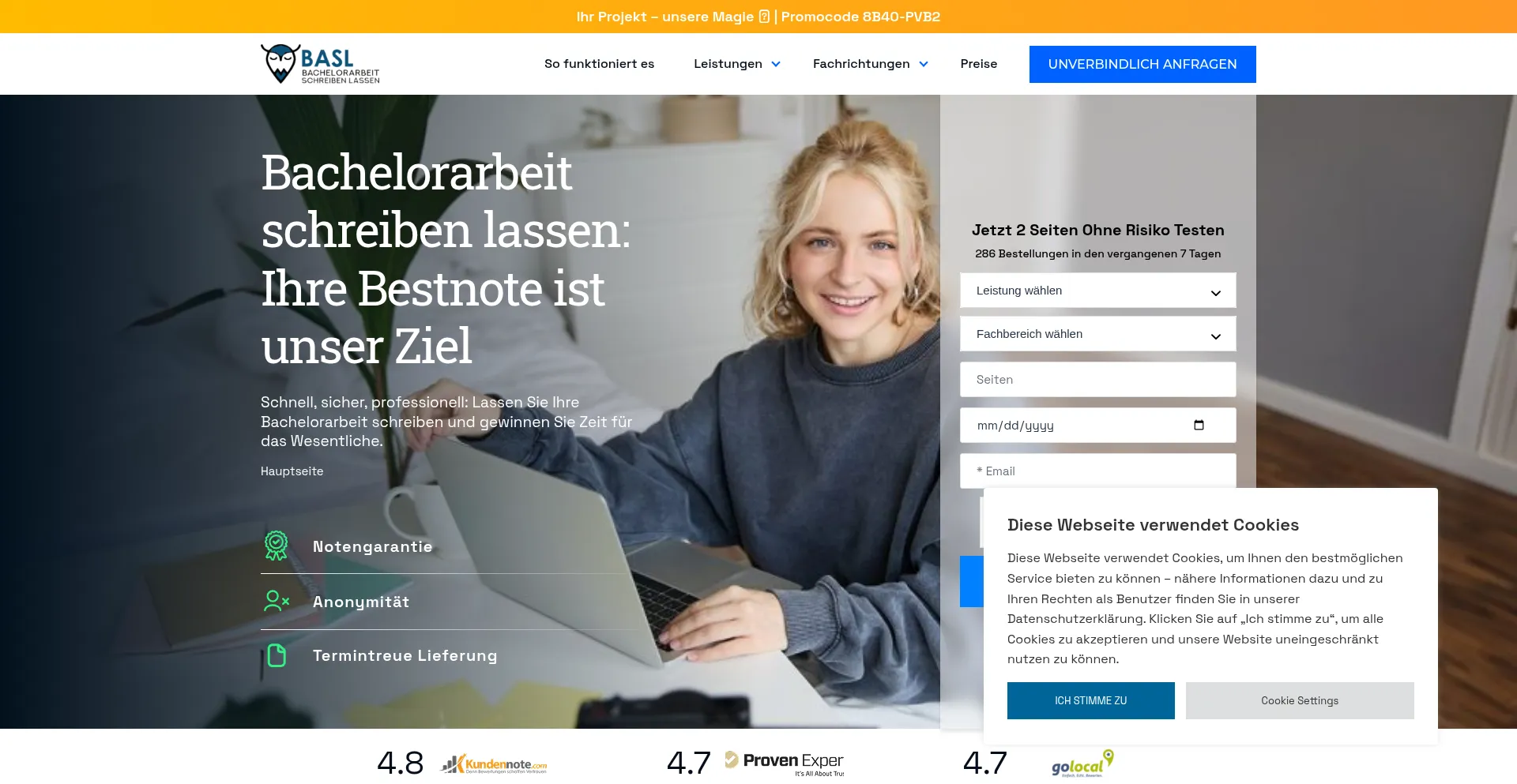 Ghostwriter für Ihre Bachelorarbeit: pünktlich, plagiatsfrei & ohne KI. Unterstützung in 30+ Fachbereichen inkl. Beratung & Ratenzahlung.