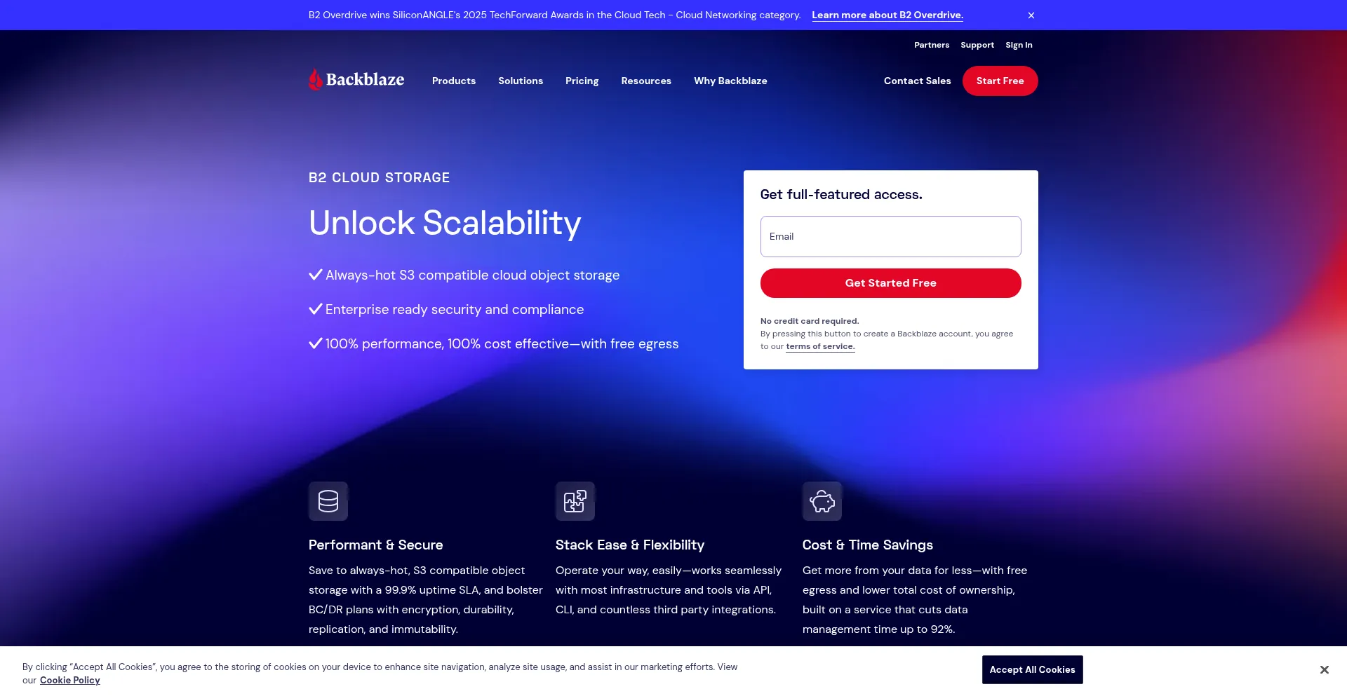 Backblaze B2 provides unlimited data storage in the cloud at 1/5th the cost of Amazon S3, Microsoft Azure, and Google Cloud.