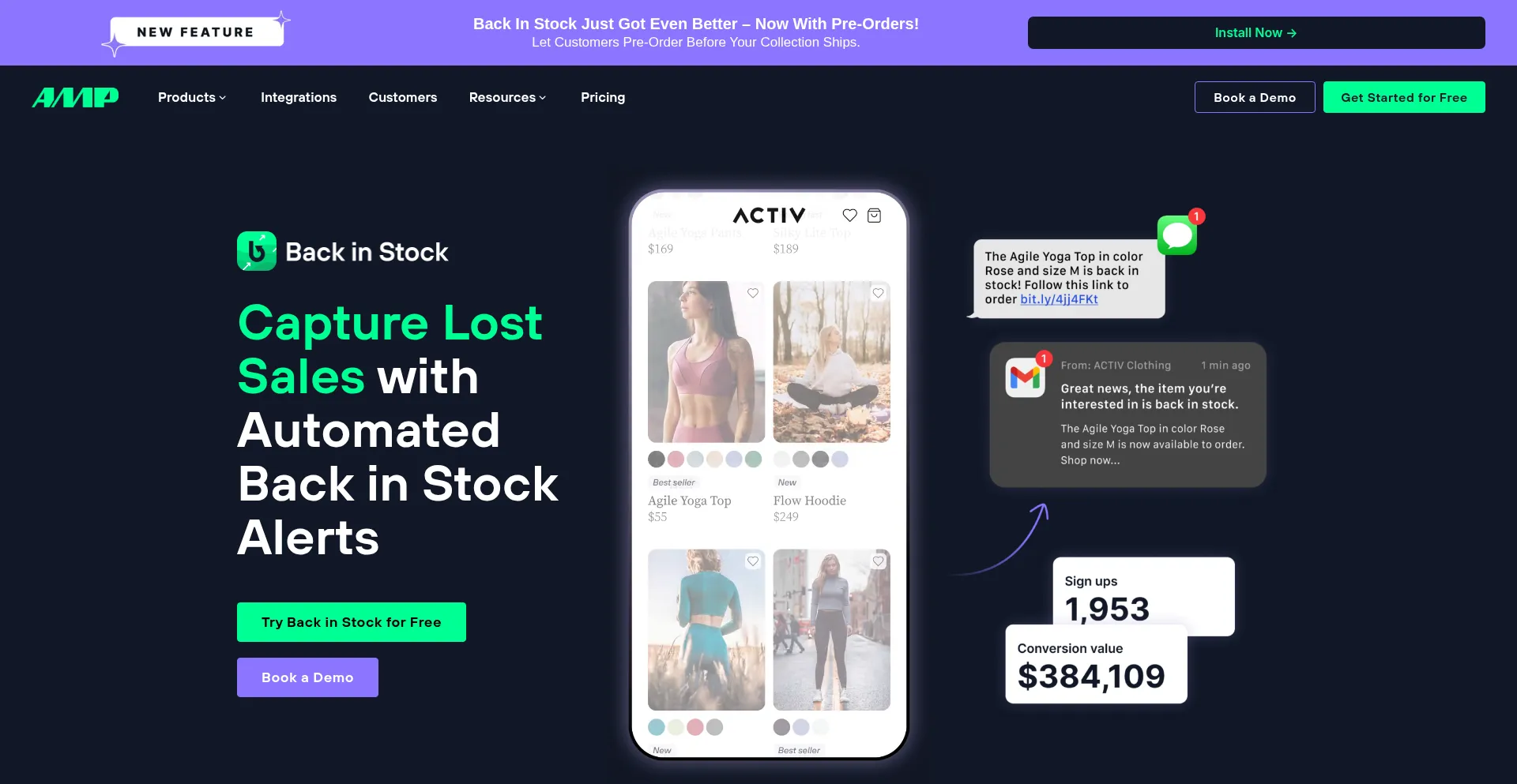 Capture and convert buyer demand with customizable signup forms and instant customer restock notifications via Email and SMS.