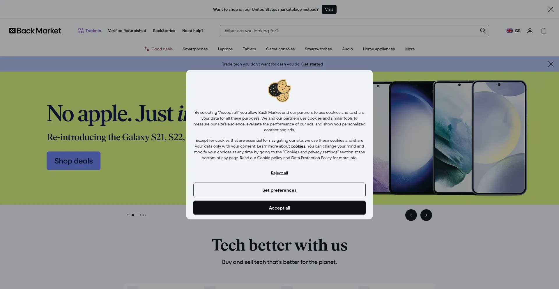 backmarket.co.uk 使用 Google Tag Manager 在其网站上添加和更新追踪代码(标签)。