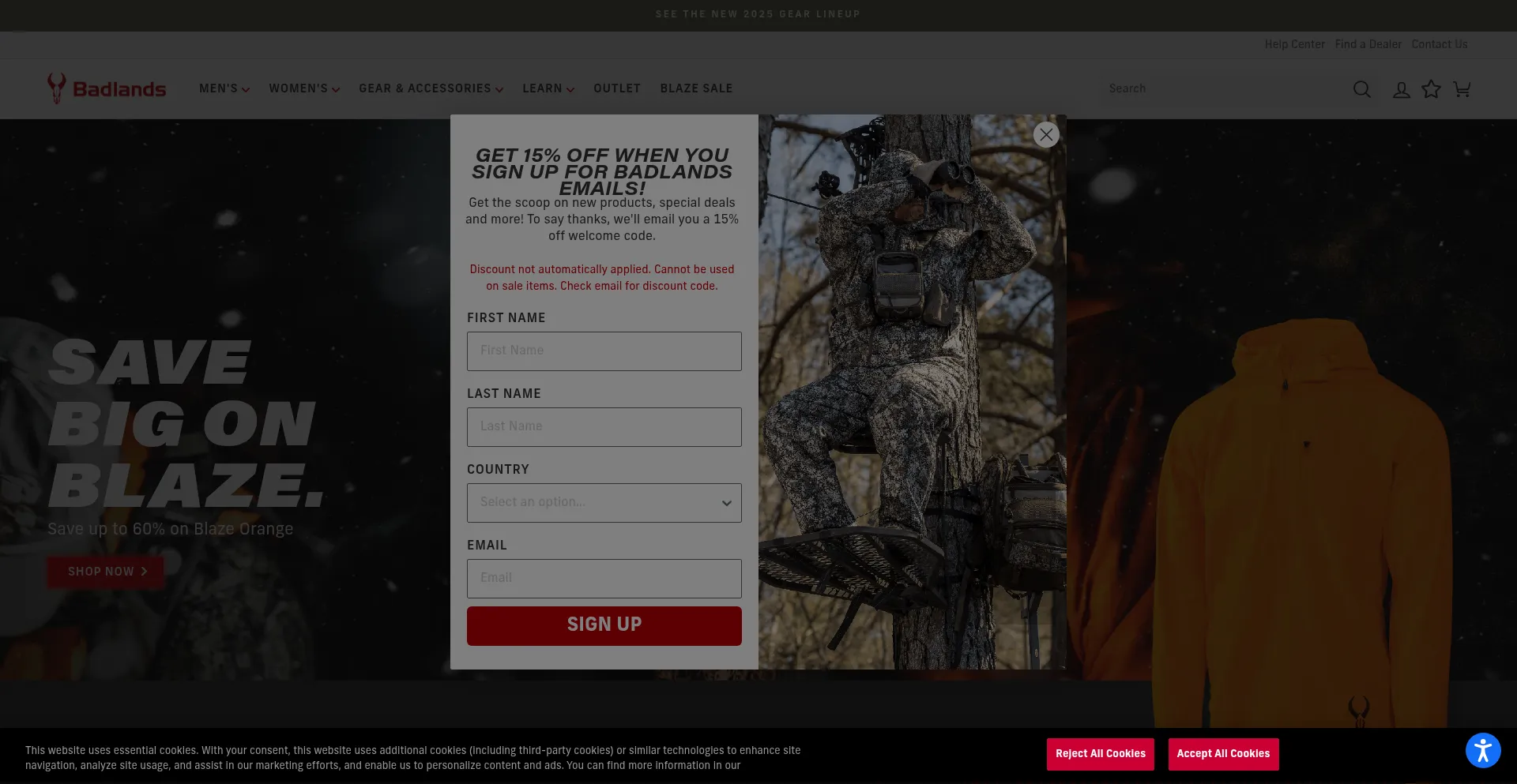 该网站实现符合GDPR或CCPA等隐私法规的cookie同意机制。这表明 badlandsgear.com 遵守数据保护标准并为用户提供对个人数据收集实践的控制。