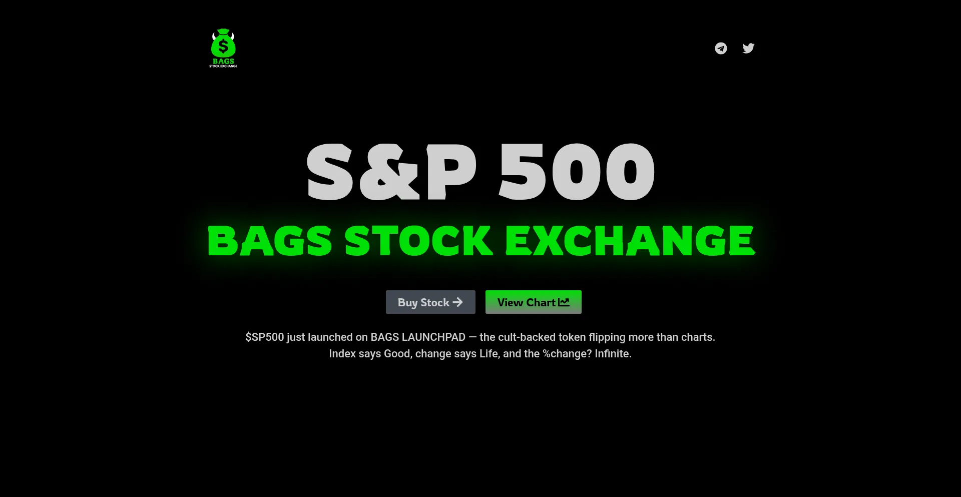 $SP500 just launched on BAGS LAUNCHPAD — the cult-backed token flipping more than charts.Index says Good, change says Life, and the %change?