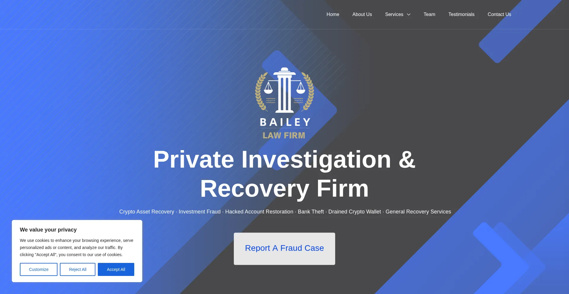 Private Investigation & Recovery firm Crypto Asset Recovery · Investment Fraud · Hacked Account Restoration · Bank Theft · Drained Crypto Wallet · General Recovery Services...